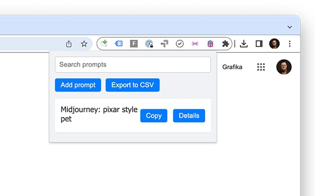 Prompt Library Manager to lekka wtyczka do przeglądarki Chrome, która pomaga zapisywać, porządkować i szybko wykorzystywać często używane prompty oraz szablony tekstów. Zamiast trzymać je w notatkach, dokumentach lub czatach, masz je zawsze pod ręką — dokładnie tam, gdzie pracujesz.