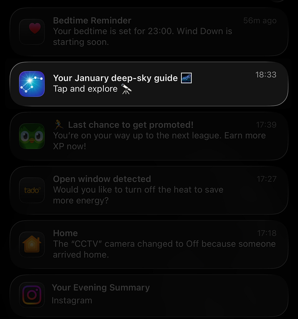 Aplikacja potrafi wysyłać 1–2 powiadomienia dziennie, również użytkownikom premium. Tyle że… obserwacja nieba to nie jest czynność codzienna. Jako ktoś, kto ma teleskop, wiem, że: